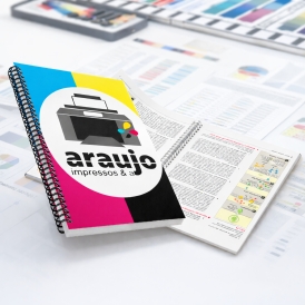 Acabamentos: Capa transparente, Contra capa preta, Espiral