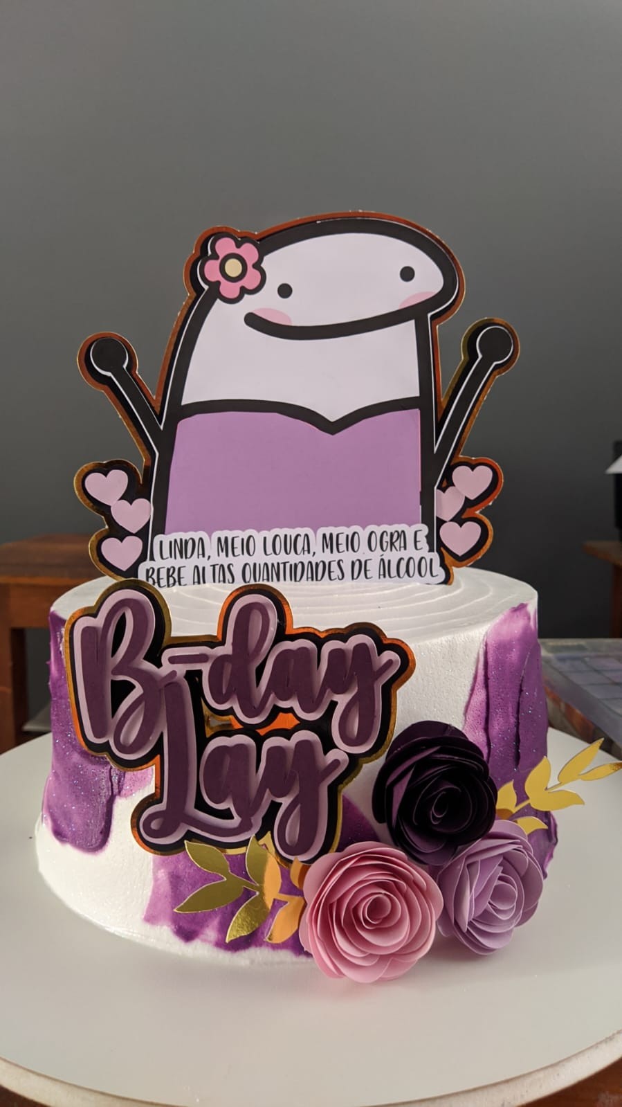 Topo de bolo personalizado em 3D, desenvolvido com acabamento delicado e visual sofisticado.